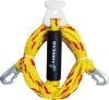 If your boat isn't equipped with a pylon or ski eye and you enjoy water sport activities, you need a tow harness. It creates a tow attachment point at the center of your boat, behind your outboard or stern drive. This 5,000 pound tensile strength tow harness is perfect for pulling a skier, wake boarder, knee boarder or up to 5-rider tubes. Simply clip it onto the 2 stern eyes with the 5,000 pound tensile strength hooks provided, and attach your ski or tube rope to the heavy duty Kwik-connect. 12' long to fit larger boats. Yellow/red.