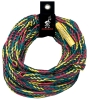 This heavy-duty 16 strand 9/16" x 60' tube tow rope is rated at 4,150Lbs. tensile strength! Engineered to pull the big 3 and 4 rider tubes, this rope will stand the test of time. It has a unique Rasta color scheme with a 6" loop spliced at each end. A Rope Keeper is included for tangle-free storage.
