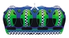 Prepare for exciting hydroplaning action with the Sportsstuff HIGH ROLLER 4! The unique multi sphere design of this multi rider tube barely touches the water while towing. The strategically placed air chamber on the back top edge supports knees and feet for comfortable positioning through whips and turns. Large EVA foam body pads protect riders' knees and legs. A multitude of foam filled handles with EVA knuckle pads provide lots of options for comfortable gripping. Equipped with a Kwik Connect for quick and easy rope hook-ups and a patented Speed Safety Valve for fast and convenient inflating and deflating. BALLS OF FIRE! Dimensions Deflated: 149" x 70".
